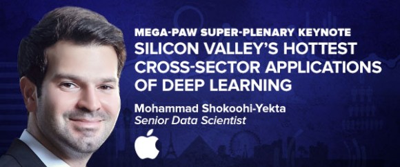 Don't Miss Apple’s Super-Plenary Keynote! We're excited to announce that Mohammad Shokoohi-Yekta, Senior Data Scientist at Apple, is confirmed to deliver the super-plenary keynote address at Predictive Analytics World (Las Vegas - June 16-20): THE place to meet peers, new business partners, and get up to speed on the industry's latest developments and opportunities. Join us for this highly anticipated super-plenary keynote speech on June 18, 2019. This “can't-miss” super-plenary address is provided for attendees of all five (5) Mega-PAW conferences, PAW Business, PAW Financial, PAW Healthcare, PAW Industry 4.0, and Deep Learning World. June 18, 2019 - 8:50 am Silicon Valley's Hottest Cross-Sector Applications of Deep Learning Mohammad Shokoohi-Yekta, a veteran applying deep learning at the likes of Apple, Samsung, Bosch, GE, and Stanford, kicks off Mega-PAW 2019 by addressing these big questions about deep learning and where it's headed: